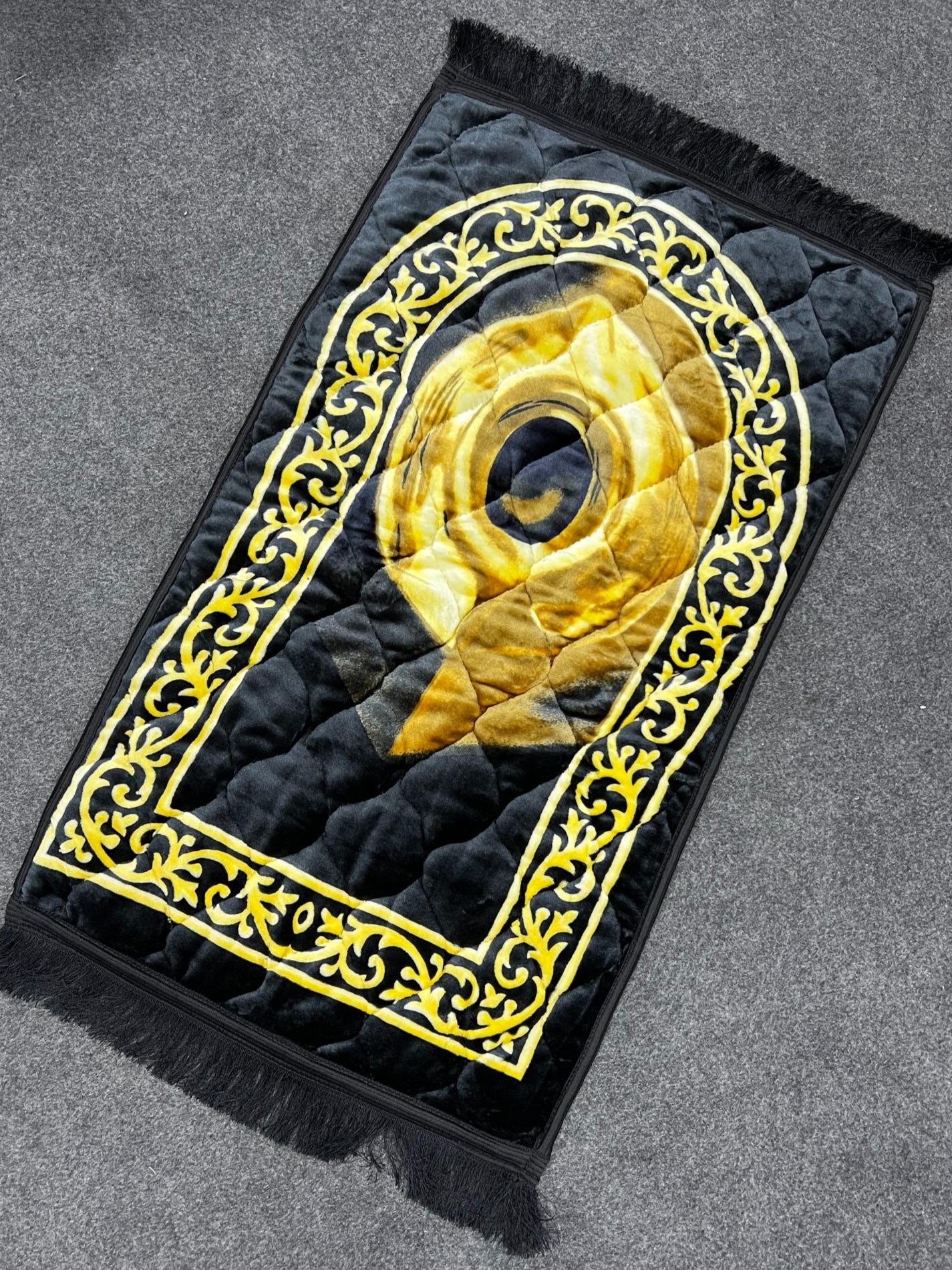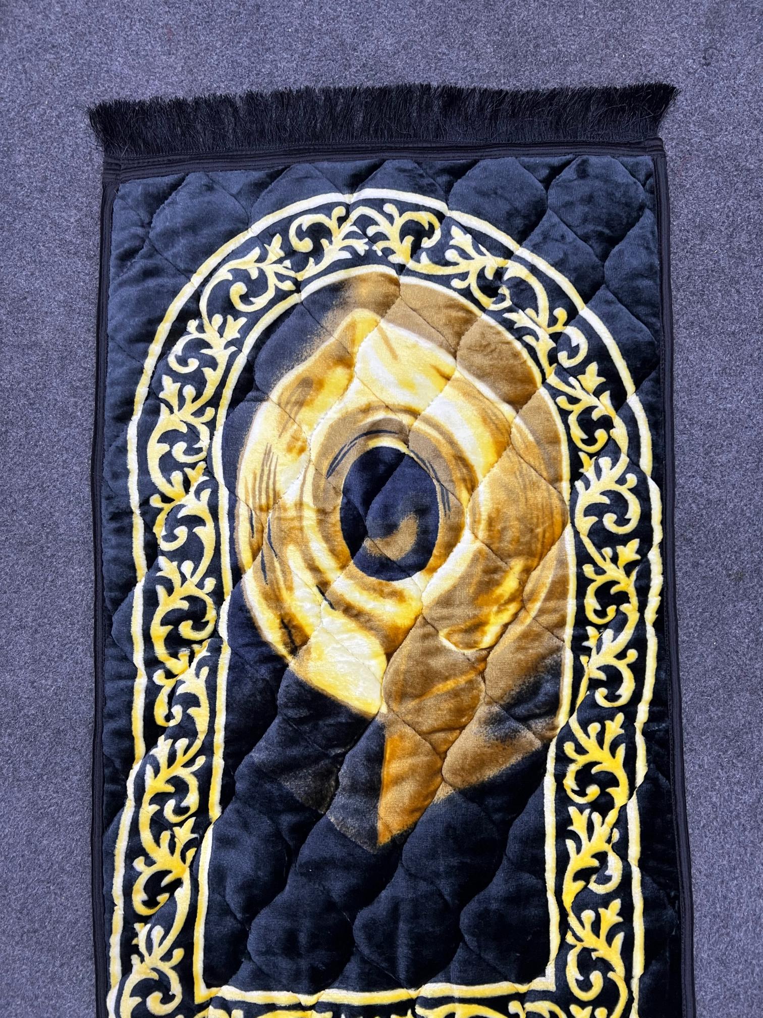 This Black & Beige Printed Prayer Mat is a durable and stylish choice for any prayer or meditation space. Featuring a unique print design, this mat adds a touch of elegance while providing comfort during prayers. Made with high-quality materials, this mat is built to last and is suitable for all types of flooring.