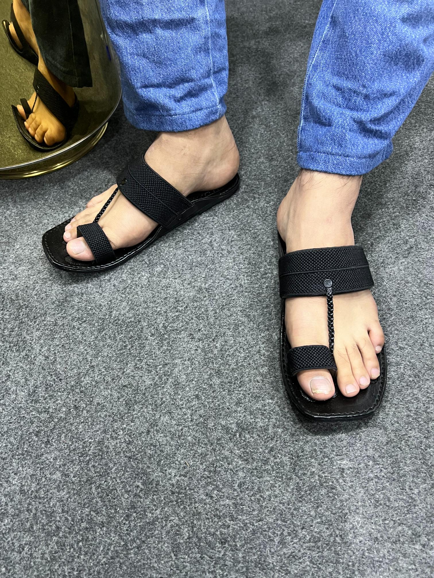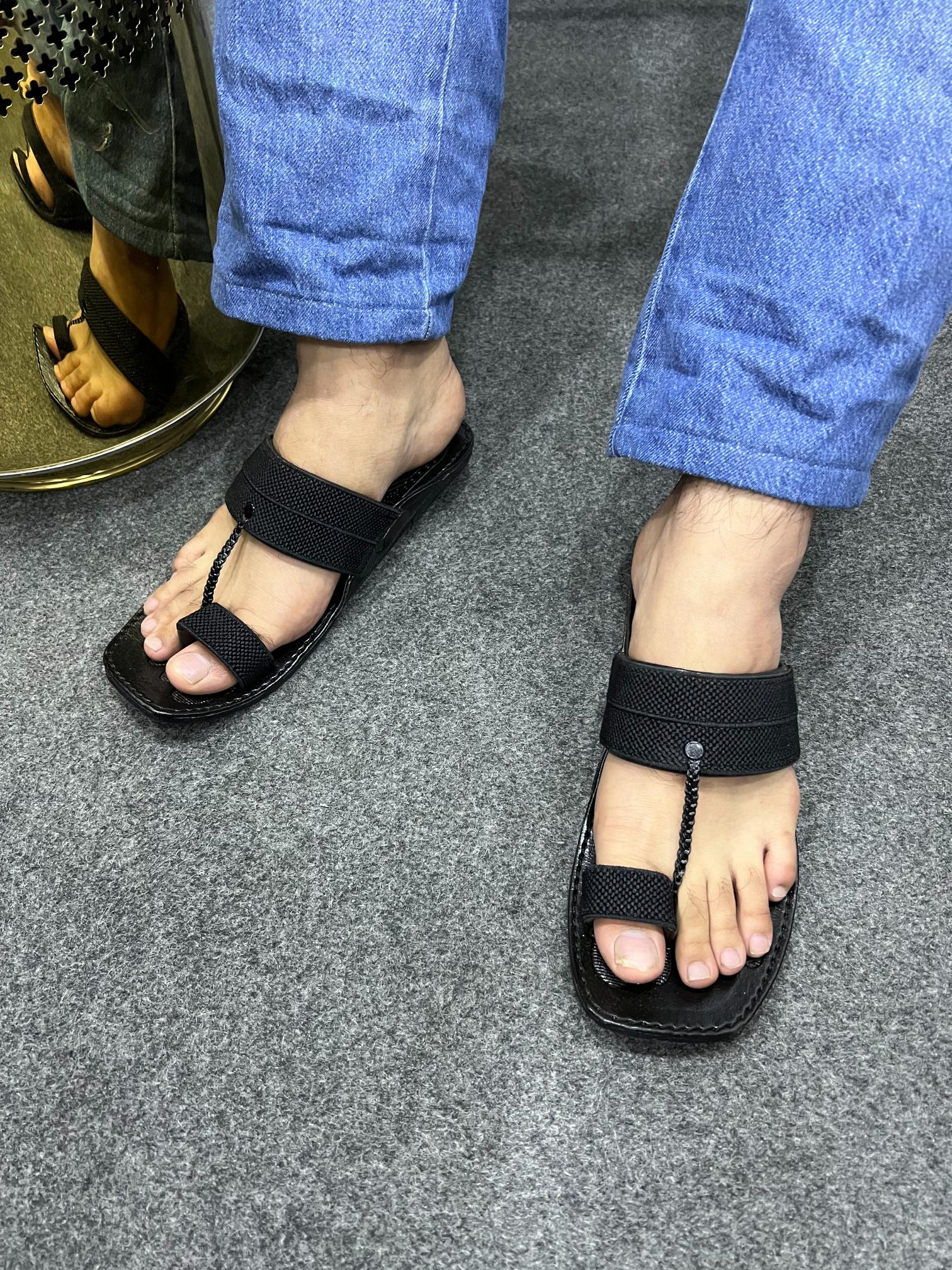 Experience comfort and style like never before with our Jashan Black Kolapuri Chappal for Men. Made with high-quality materials and featuring a unique design, this chappal offer both durability and fashion. Elevate your look with our traditional Kolapuri chappal, perfect for any occasion.