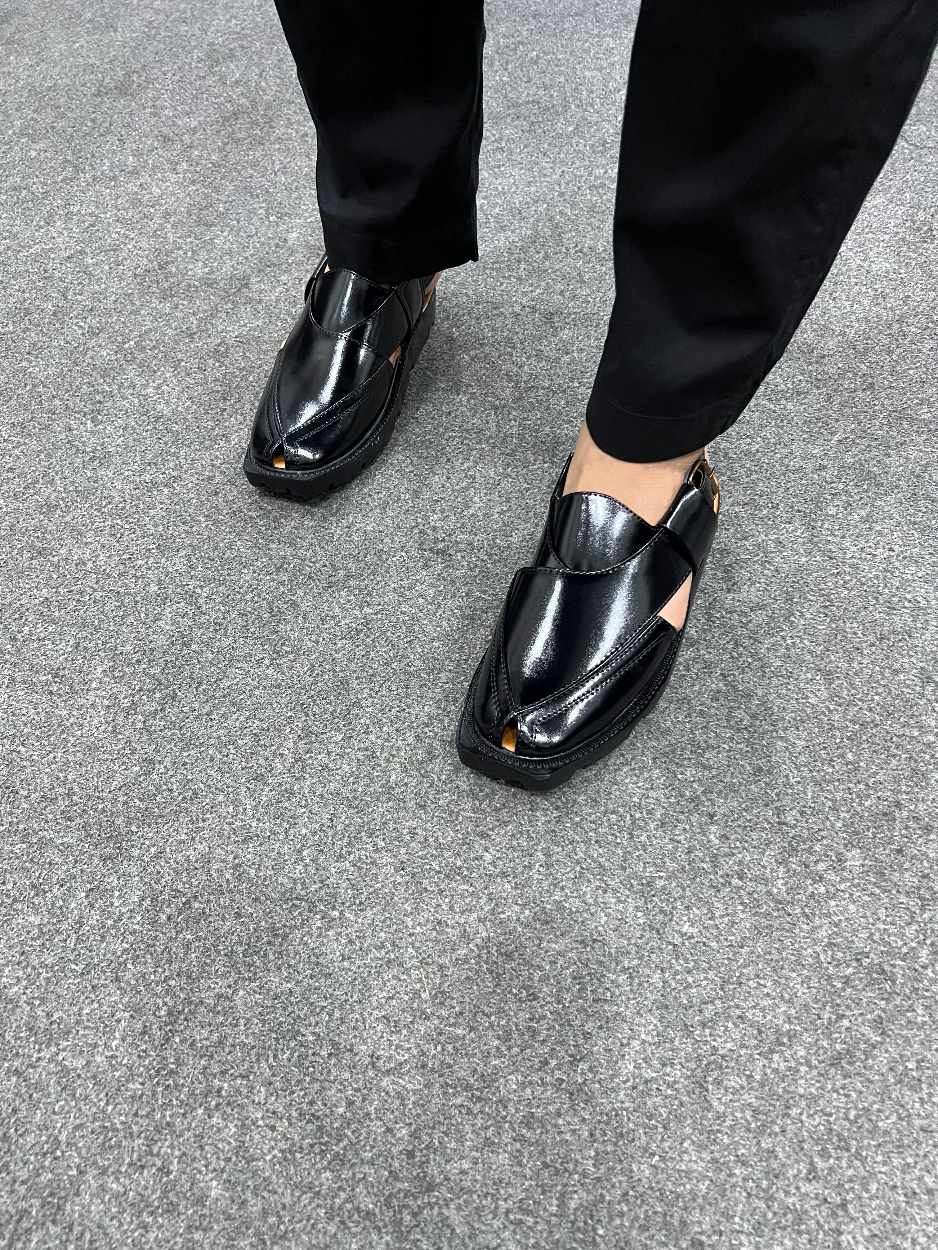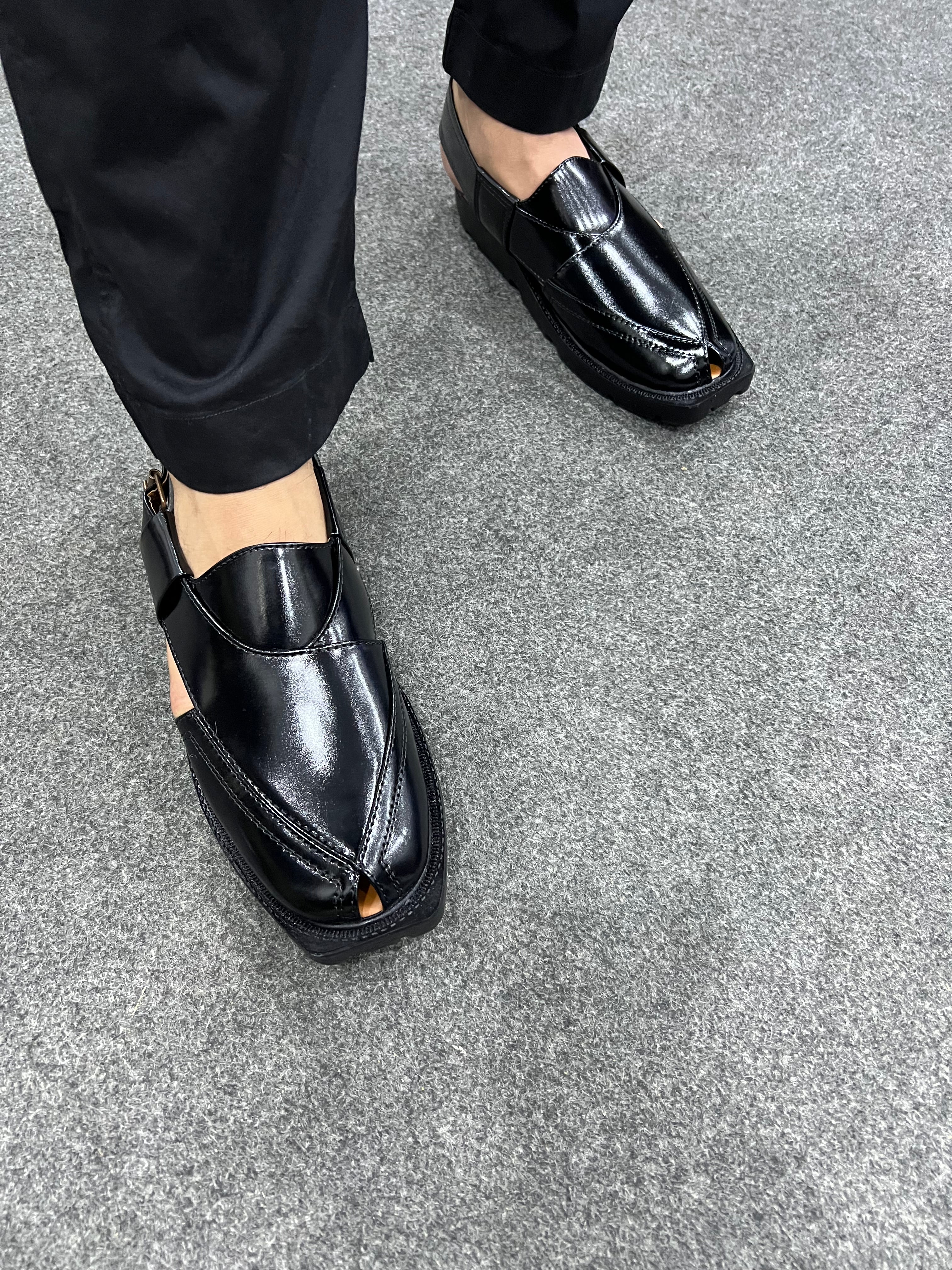 Experience comfort and style with the ZARBI Black Peshawari Chappal. Made with premium materials, this traditional Pakistani sandal offers a modern twist with its black color. Walk confidently in its durable and slip-resistant sole, perfect for both casual and formal occasions. Upgrade your footwear collection with this expertly crafted chappal.